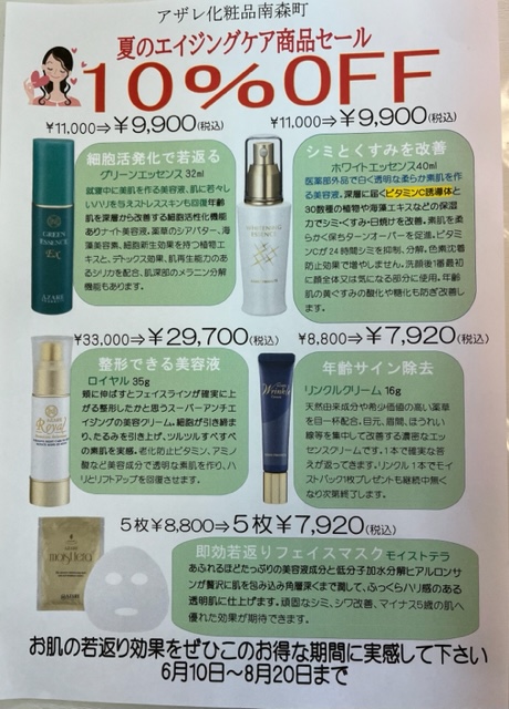 この夏エイジングケア商品の初の10%OFFバーゲンを致します。